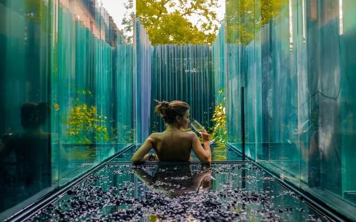 El segundo candidato de nuestra lista de los hoteles más peculiares de España te va a enamorar en cuanto lo veas. Muchos de los que lo han probado, previo pago de más de 300 euros por una noche, aseguran que es más una “experiencia arquitectónica” que un hotel en sí. Situado en la zona volcánica de la Garrotxa, este complejo está compuesto por 5 pabellones cuyas paredes y suelos están hecho totalmente de cristal, haciéndote sentir en una especie de pecera rodeada de exuberante naturaleza. Por si eso no te parece suficiente, cada una de sus habitaciones cuenta con un onsen climatizado, y a escasos metros existe un restaurante con dos estrellas Michelin. ¡Ah! Se nos olvidó comentarte algo importante: el techo también es de cristal. Así que prepárate para gozar de uno de los mejores cielos estrellados de Europa.