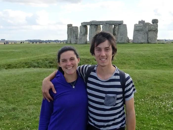 Las primeras millas son terribles porque me doy cuenta de que estoy realmente fuera de estado físico y de que en Inglaterra hay muchas pero muchas colinas cosa que no había tenido en mente. Obviamente las bajadas están muy buenas, pero cuando me toca la subida, con una bici tan pesada como la mía y con tan solo 6 cambios las cosas se complican y solo resta empujar la bicicleta. Nuestro primer día arrancó muy divertido porque al cabo de una milla, una lluvia torrencial arranco, obviamente seguimos, ya estábamos en viaje y afortunadamente teníamos todas nuestras cosas cubiertas con bolsas plásticas. Pero la lluvia no paró en todo el día. Luego de cuatro horas de viento en contra, subida y lluvia decidimos parar en una tranquera y meternos a un campo. Por suerte George, el dueño, al vernos nos lleva a un vagón de tren y nos deja pasar la noche en él. La lluvia no paró en ningún momento. Por suerte estábamos de muy buen humor y nos lo tomamos con gracia. Por la mañana George aparece con frutas y chocolate caliente y así seguimos viaje rumbo Avebury donde pudimos ver y caminar alrededor del enorme Henge. Pero la lluvia nos siguió escoltando y un matrimonio nos invitó a su casa a tomar una taza de té mientras tanto y de paso nos ayudaron a decidir nuestro recorrido ya que no tenemos mapa.