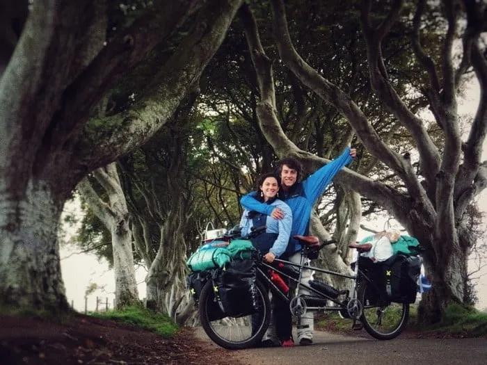 ¿Pero qué bici era la adecuada para nosotros? Nuestro Renault 4 era algo hermoso, con mucho estilo y realmente nos gustaría volver a tener algo único, algo que nos caracterice. Una noche charlando con un amigo biciletero que nos hospedo varias noches en Edimburgo surge la idea del tándem. Al principio no teníamos ni idea de que significaba eso, pero luego de ver algunas fotos en Internet, ¡Nos encanto! En ese momento decidimos que nuestro viaje seguiría a bordo de una bici tándem y a pesar de que nunca antes hayamos usado una, ya nos estamos imaginando esta nueva fase del viaje. Sabemos que es muy importante seguir estos impulsos, porque hasta ahora nunca nos han fallado. Desde el día que tomamos la decisión de viajar, todas las decisiones han sido espontaneas, impulsivas y siempre pensando en positivo, haciendo caso omiso a las negativas que nos puedan llegar a plantear, siempre intentando de cumplir nuestros sueños. Por suerte la espera no fue muy larga y luego de unos días encontramos una muy linda con cuadro de hierro en e-bay.